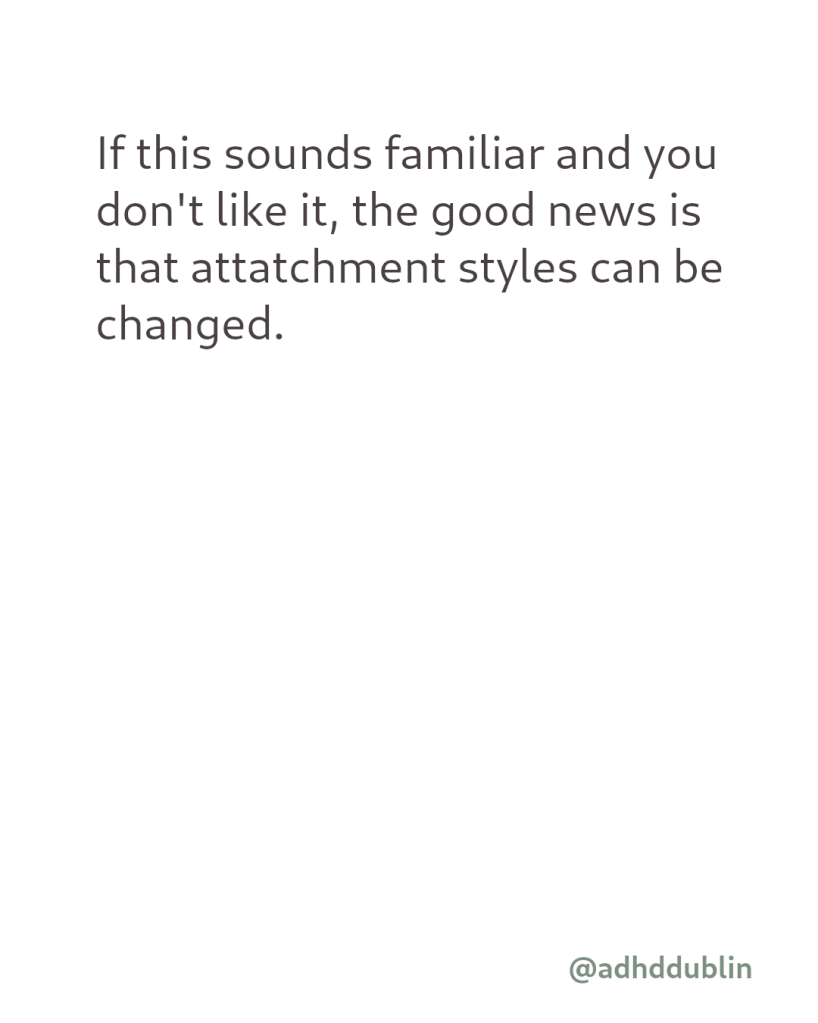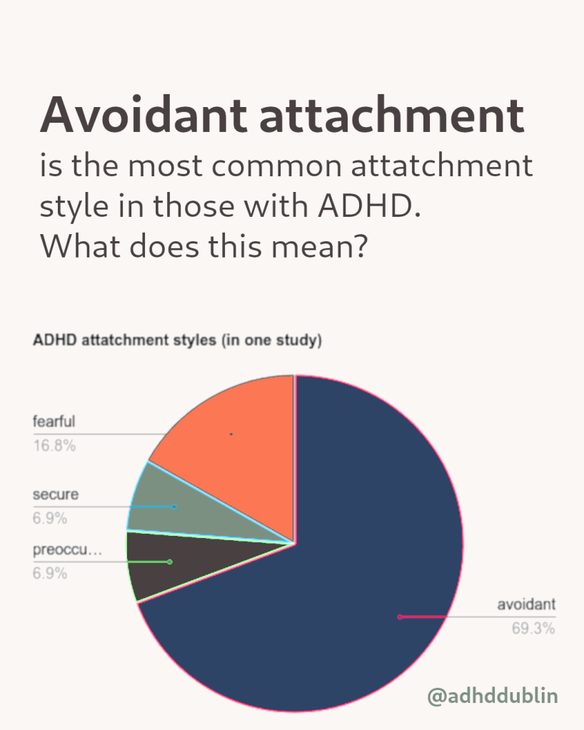 Avoidant attachment is the most common style among people with ADHD, 7-10% have a secure attachment style (Koemans et al., 2012; Storebø et al., 2013).